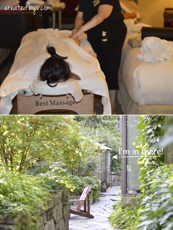 We stayed at the Hotel Bonaventure in downtown Montreal, located easily off the expressway and within walking distance of the Old Montreal district. Although the layout was a bit strange {it reminded me of a cruise ship}, the rooms were spacious and clean with modern decor. The hotel doesn’t have an on-site spa, but my friends enjoyed an in-room massage, facial and exfoliation while I relaxed on the rooftop garden with a massage in a private tent.