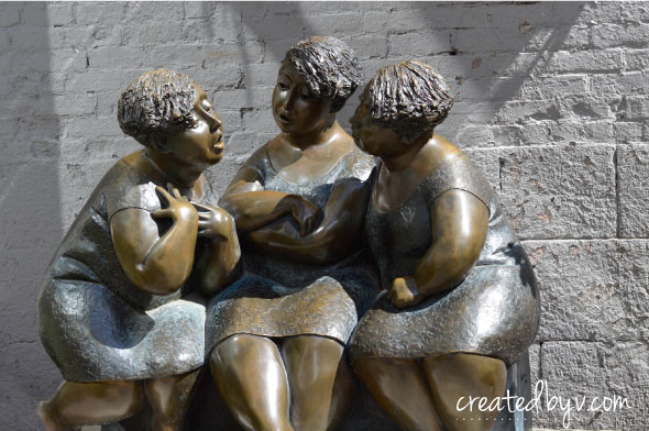 Well, to end our exploration of Montreal, I leave you with this very fitting statue, called Les Chuchoteuses, of three boxum bronze beauties gossiping and carrying on in conversation. I feel very fortunate to have such friends to sit down with, even after several years apart, and be completely absorbed in conversation together, enjoying one another’s company. Those kinds of friendships fill a special place in your heart and are truly unique. So hug your girlfriends a little closer the next time you see them! — v.